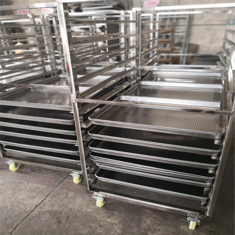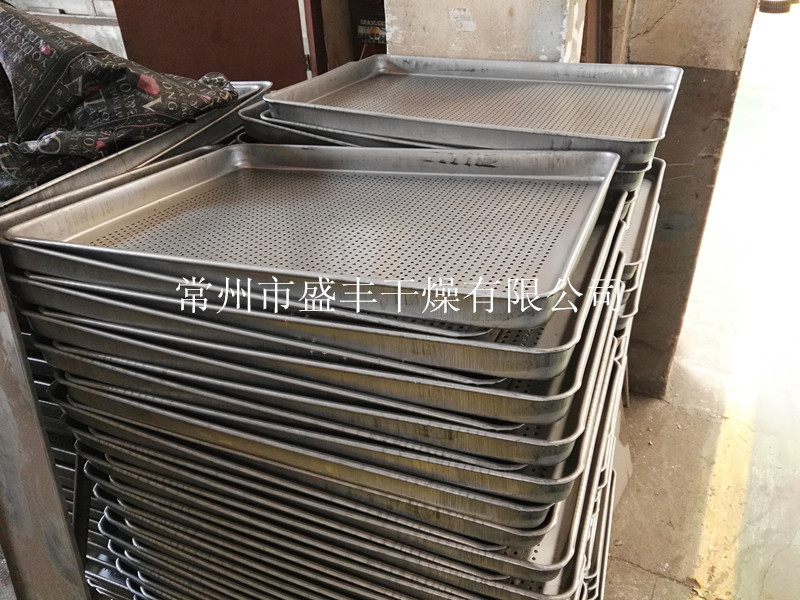 烘盘,又名托盘、烤盘,是指在干燥箱中盛放物料的器具,一般由金属制成。在工业生产,烘盘一般不单独使用,均装备在烘干箱、真空烘箱等设备中一起工作。目前广泛使用在制药、化工、食品、农副产品等行业的烘盘,根据使用材质的不同,主要由不锈钢、铝合金等两大类(也有少量的铁制烘盘,用于外壁上搪瓷);根据外形的不同,可分为无孔盘和打孔盘。